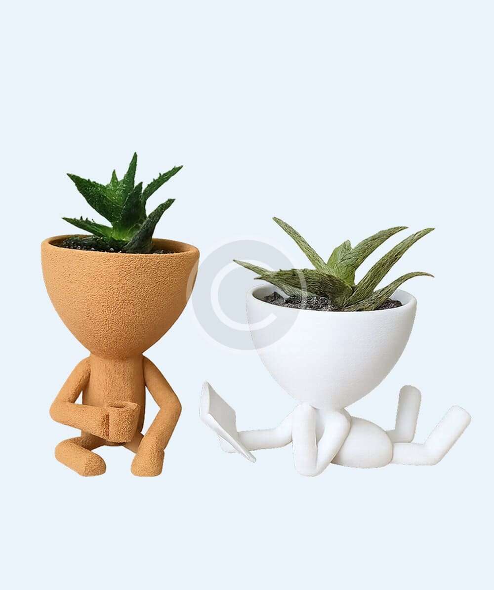 Add personality to your plant display with this set of playful character pots. Made from textured ceramic, each pot is shaped like a charming humanoid figure—one sitting with a drink and the other lounging with a book. Perfect for succulents or mini cacti, these conversation-starting pots bring joy and a modern twist to home or office spaces.